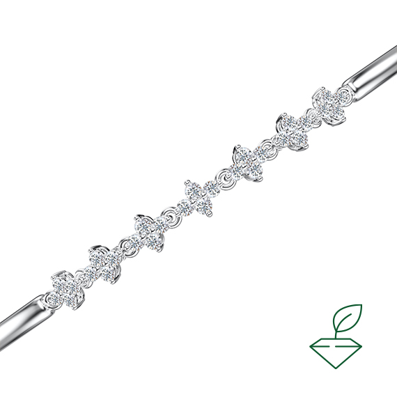 Браслет из белого золота 585 пробы с выращенными бриллиантами. Характеристики вставок: 28 выращенных бриллиантов Кр-57 общей массой от 0,55 карата 2/4А, диаметр каждого бриллианта 1,7 мм. Изделие покрыто родием, для защиты металла от внешних воздействий и придания ему зеркального блеска. Данный браслет отлично подойдет в качестве украшения на каждый день.