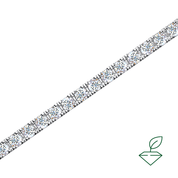 Браслет из белого золота 585 пробы с дорожкой выращенных бриллиантов. Характеристики вставок: 53 выращенных бриллианта Кр-57 общей массой от 3,2 карата 2/4А, диаметр каждого бриллианта 2,5 мм. Изделие покрыто родием, для защиты металла от внешних воздействий и придания ему зеркального блеска. Данный браслет отлично подойдет в качестве украшения на каждый день.