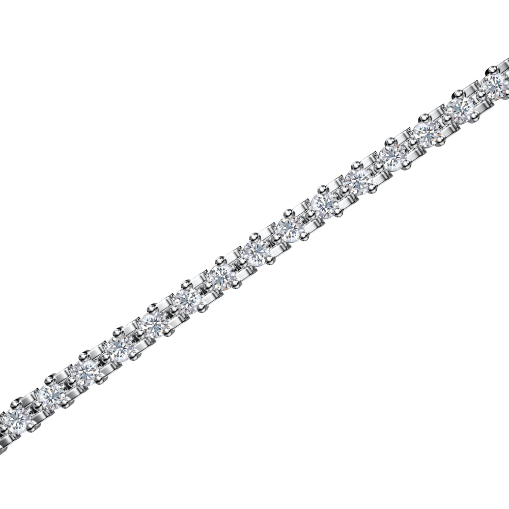 Браслет из белого золота 585 пробы с дорожкой якутских бриллиантов. Характеристики вставок: 61 бриллиантов Кр-57 общей массой от 1,2 карата 3/6А, диаметр каждого бриллианта 1,7 мм. Изделие покрыто родием, для защиты металла от внешних воздействий и придания ему зеркального блеска. Данный браслет отлично подойдет в качестве украшения на каждый день.