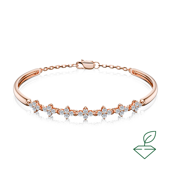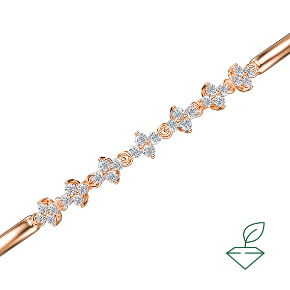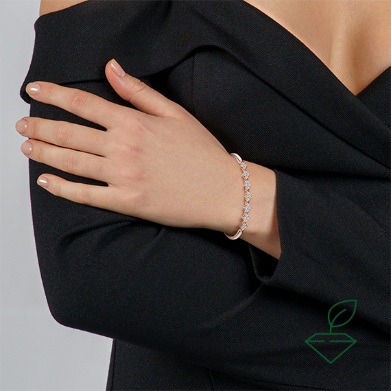 Браслет из красного золота 585 пробы с выращенными бриллиантами. Характеристики вставок: 28 выращенных бриллиантов Кр-57 общей массой от 0,55 карата 2/4А, диаметр каждого бриллианта 1,7 мм. Данный браслет отлично подойдет в качестве украшения на каждый день.