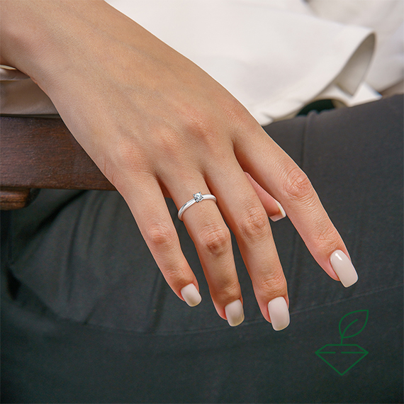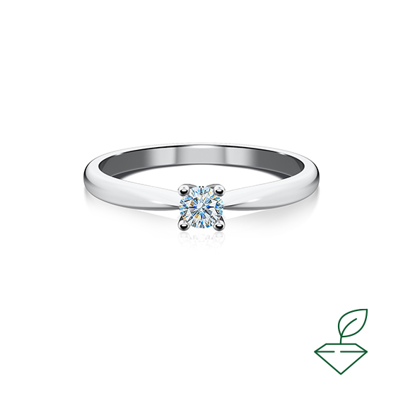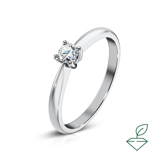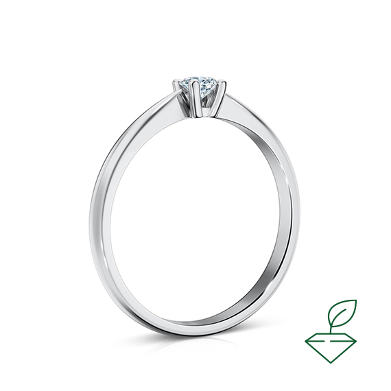 Кольцо из белого золота 585 пробы с выращенным бриллиантом. Характеристики вставки: 1 выращенный бриллиант Кр-57 массой от 0,140 карата 2/4А, диаметр 3,3 мм. Кольцо покрыто родием для защиты металла от внешних воздействий и придания ему зеркального блеска. Кольцо отлично подойдет в качесве помолвочного и как украшение на каждый день.