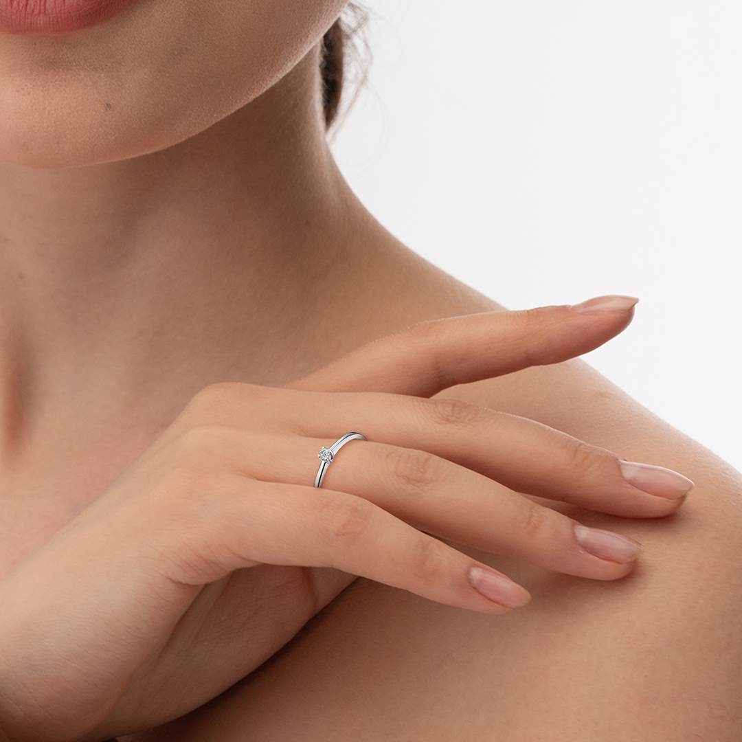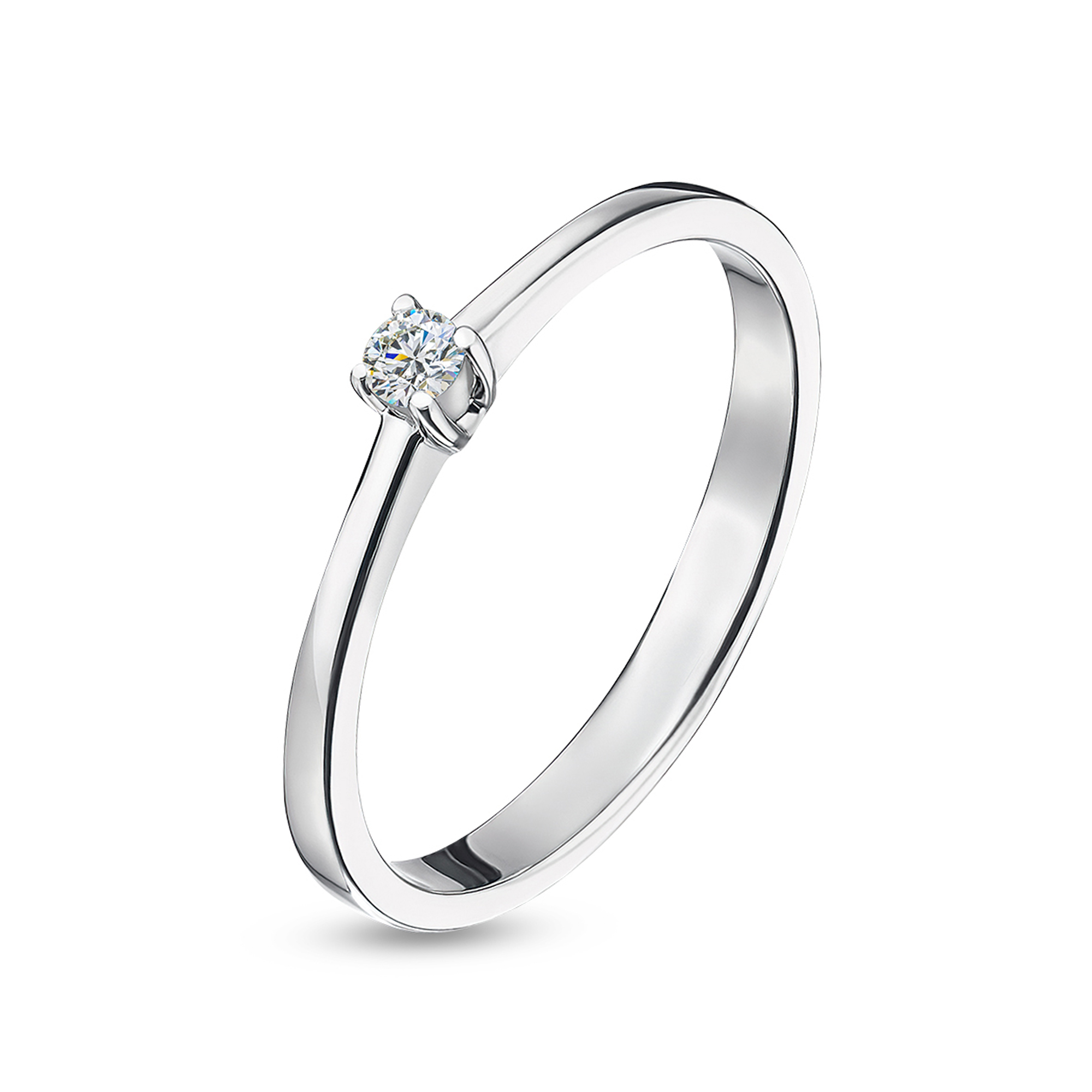 Кольцо из белого золота 585 пробы с якутским бриллиантом. Характеристики вставки: 1 бриллиант Кр-57 массой от 0,048 карата 3/6А, диаметром 2,3 мм. Кольцо покрыто родием, для защиты металла от внешних воздействий и придания ему зеркального блеска. Отлично подойдет в качестве помолвочного кольца и как украшение на каждый день.