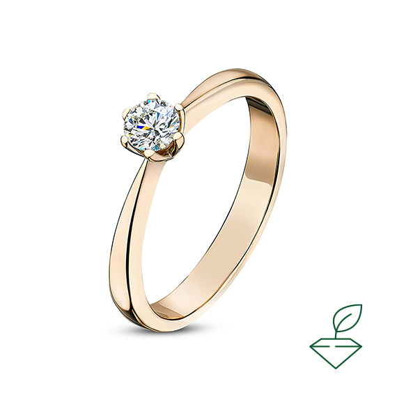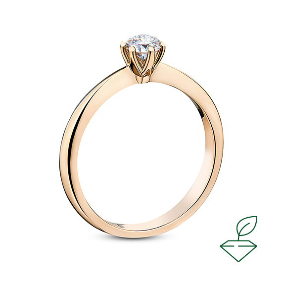 Кольцо из красного золота 585 пробы с выращенным бриллиантом. Характеристики вставки: 1выращенный бриллиант Кр-57 массой от 0,200 карата 2/4А, диаметром 3,8 мм. Отлично подойдет в качестве помолвочного кольца и как украшение на каждый день.