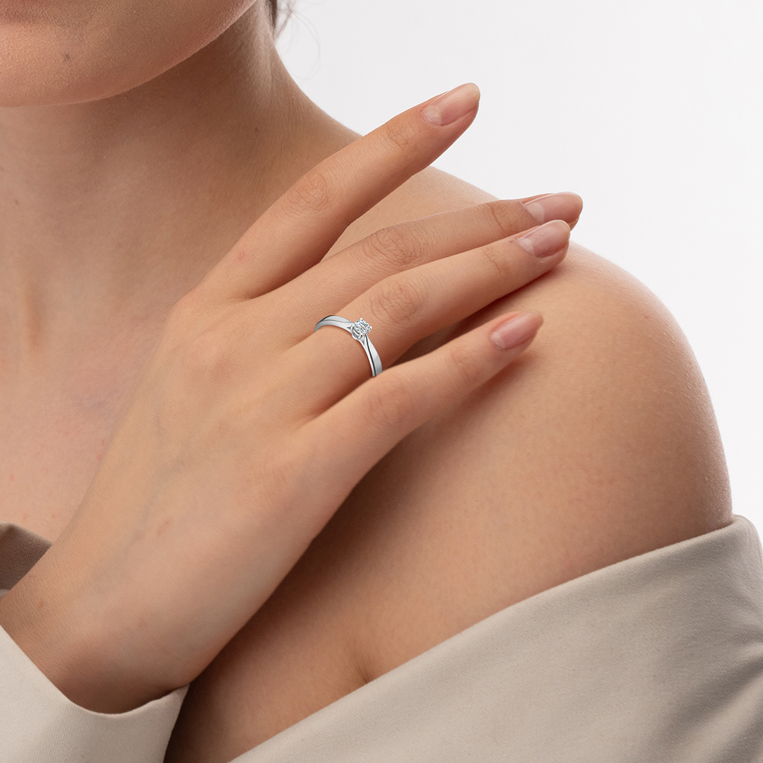 Кольцо из серебра 925 пробы с якутским бриллиантом. Характеристики вставки: 1 бриллиант Кр-57 массой от 0,12 карата 3/6А, диаметром 3,2 мм. Кольцо покрыто родием, для защиты металла от внешних воздействий и придания ему зеркального блеска. Отлично подойдет в качестве помолвочного кольца и как украшение на каждый день.