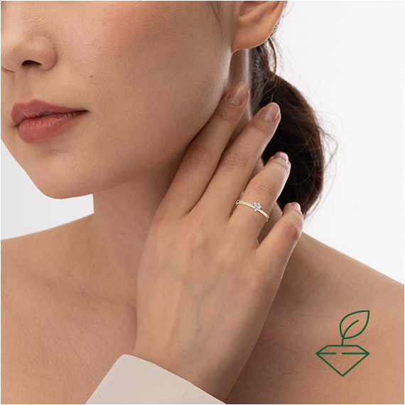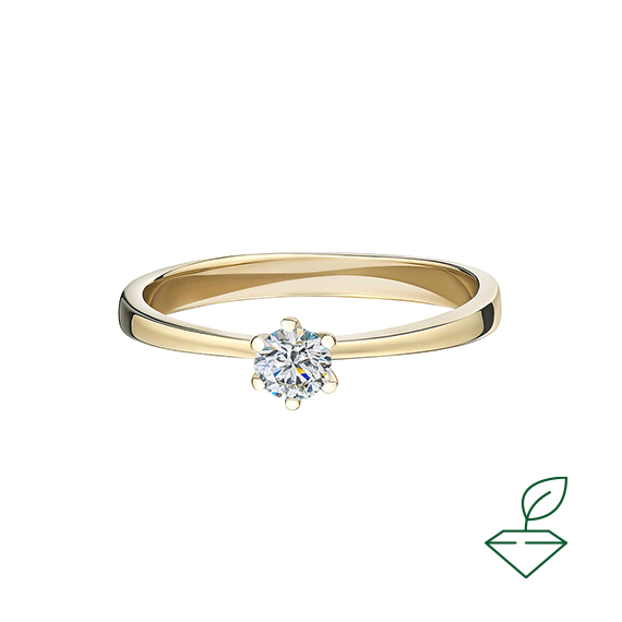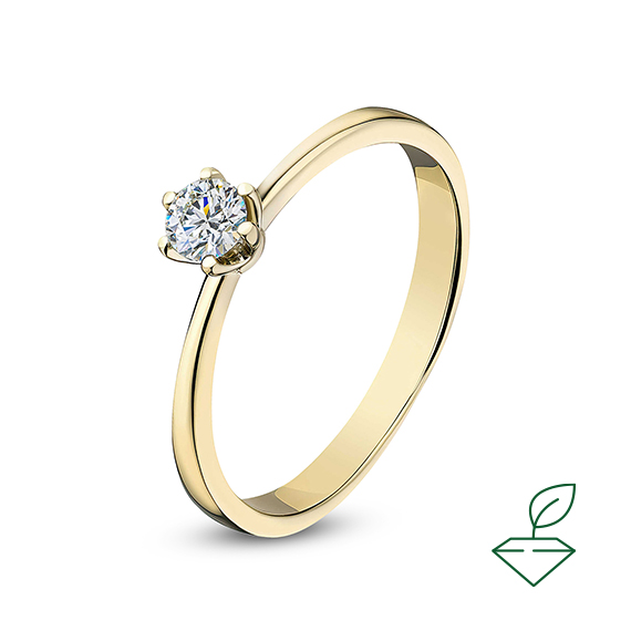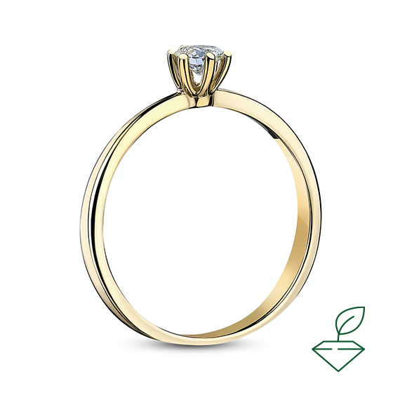 Кольцо из желтого золота 585 пробы с выращенным бриллиантом. Характеристики вставки: 1 выращенный бриллиант Кр-57 массой от 0,220 карата 2/4А, диаметром 3,8 мм. Отлично подойдет в качестве помолвочного кольца и как украшение на каждый день.