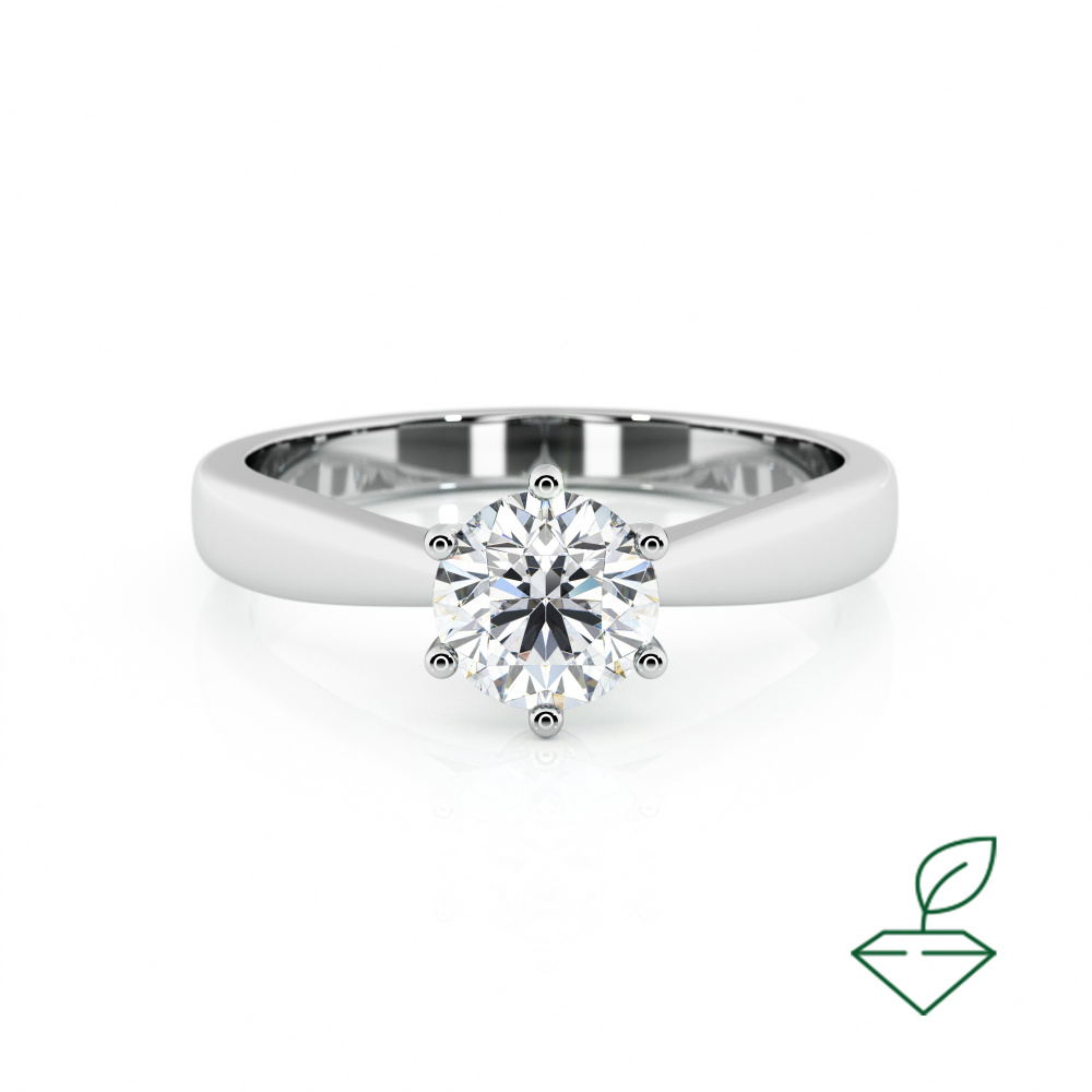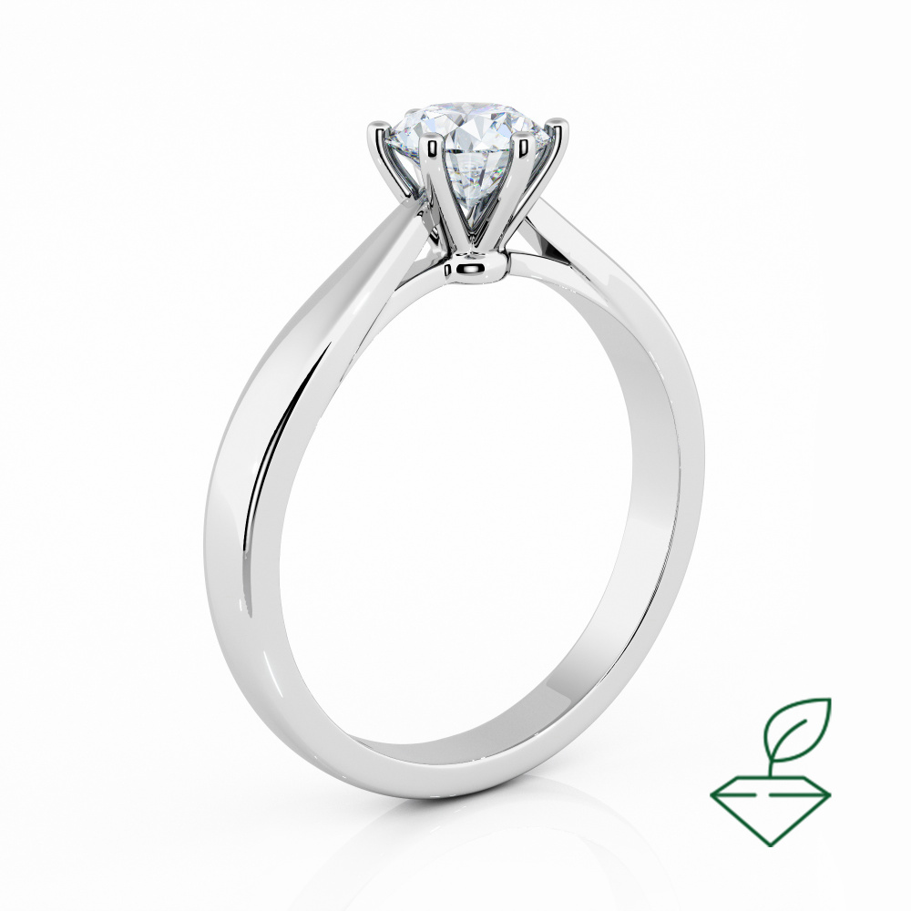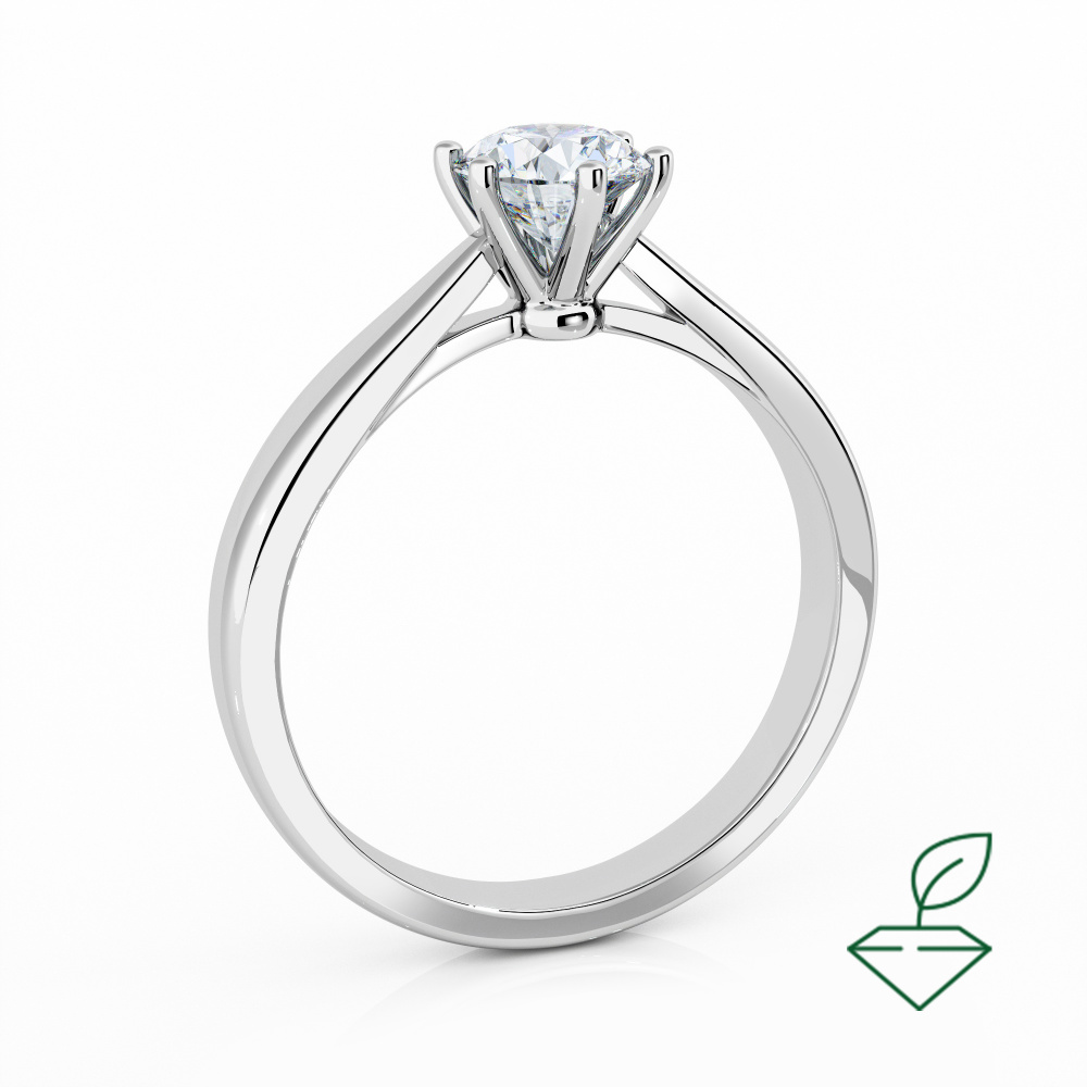 Кольцо из белого золота 585 пробы с выращенным бриллиантом. Характеристики вставки: 1 выращенный бриллиант Кр-57 массой от 0,50 карата 2/4А, диаметром 5,2 мм. Кольцо покрыто родием, для защиты металла от внешних воздействий и придания ему зеркального блеска. Отлично подойдет в качестве помолвочного кольца и как украшение на каждый день.