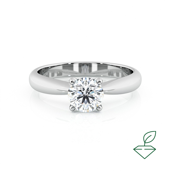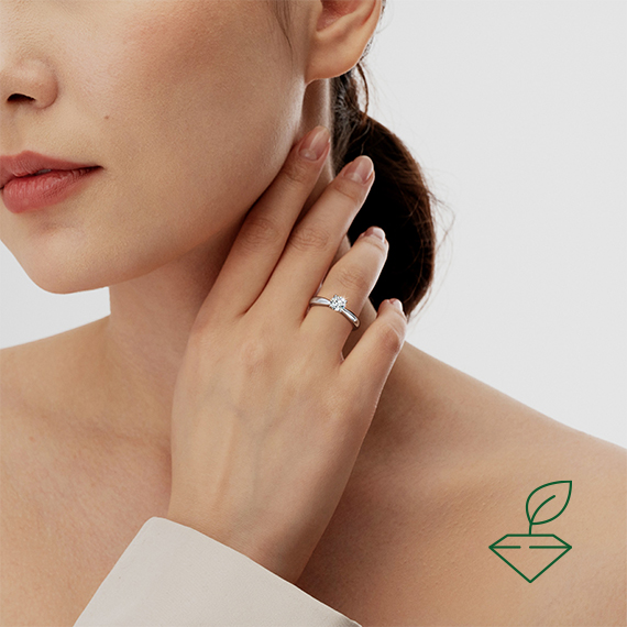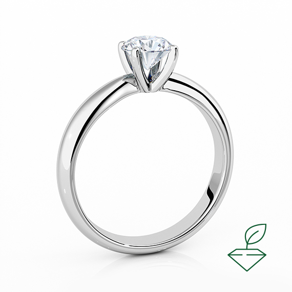 Кольцо из белого золота 585 пробы с выращенным бриллиантом. Характеристики вставки: 1 выращенный бриллиант Кр-57 массой от 0,50 карата 2/4А, диаметром 5,2 мм. Кольцо покрыто родием, для защиты металла от внешних воздействий и придания ему зеркального блеска. Отлично подойдет в качестве помолвочного кольца и как украшение на каждый день.
