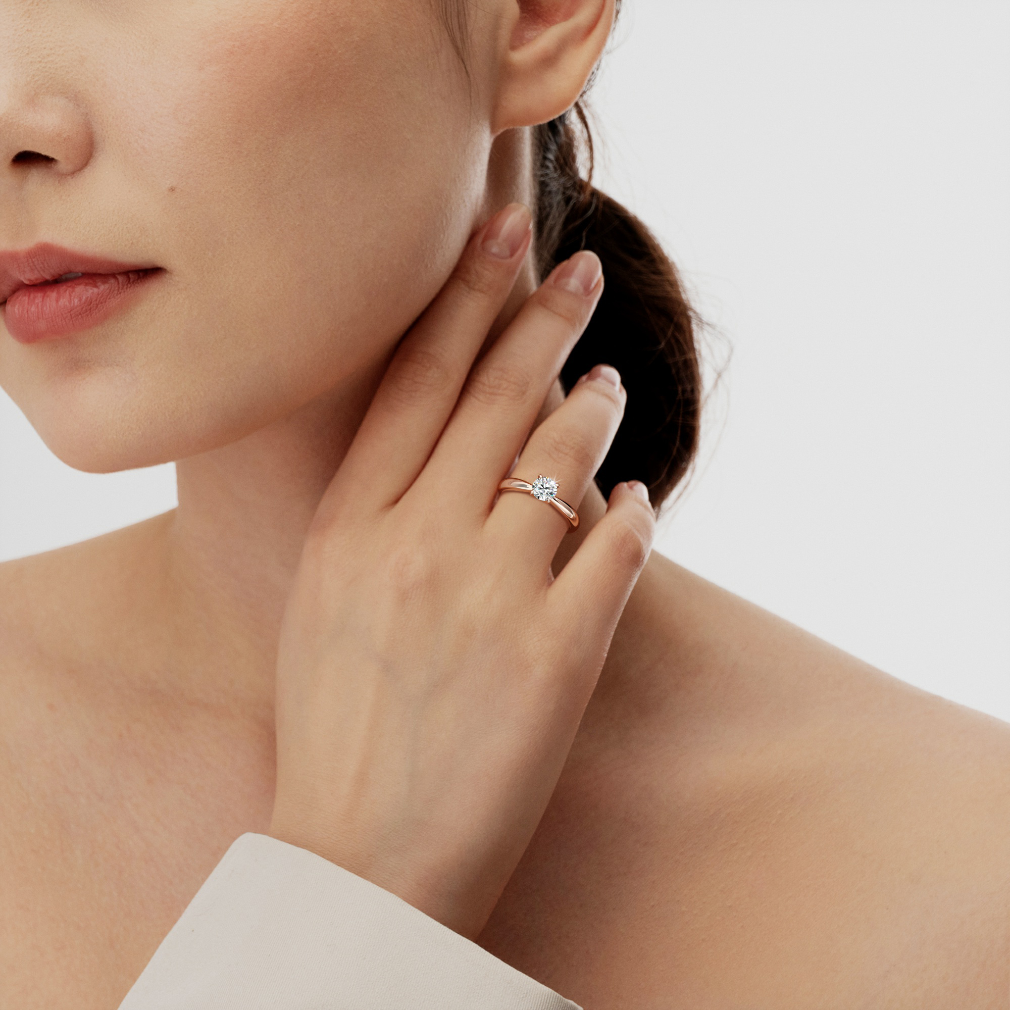 Кольцо из красного золота 585 пробы с выращенным бриллиантом. Характеристики вставки: 1 выращенный бриллиант Кр-57 массой от 0,50 карата 2/4А, диаметром 5,2 мм. Отлично подойдет в качестве помолвочного кольца и как украшение на каждый день.