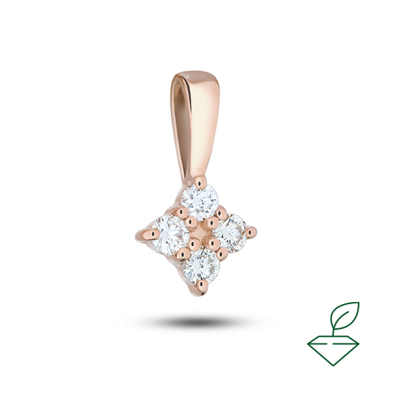 Подвеска из красного золота 585 пробы с выращенными бриллиантами. Характеристики вставок: 4 выращенных бриллианта Кр-57 общей массой от 0,124 карата 2/4А, диаметром 2,0 мм. Отлично подойдет как на торжественный выход, так и на каждый день.