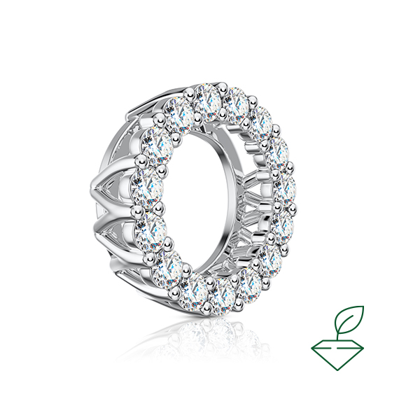 Подвеска круг из белого золота 585-й пробы с выращенными бриллиантами. Характеристики вставок: 15 выращенных бриллиантов Кр-57 общим весом от 0,34 карата 2/4А, диаметр каждого бриллианта 1,8 мм. Подвеска покрыта родием для защиты металла от внешних воздействий и придания ему зеркального блеска. Отлично подойдет в качестве подарка и изысканного аксессуара на каждый день.