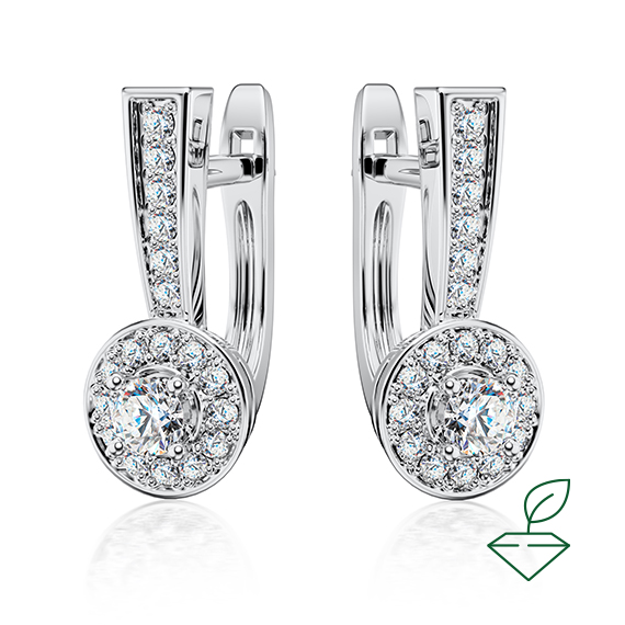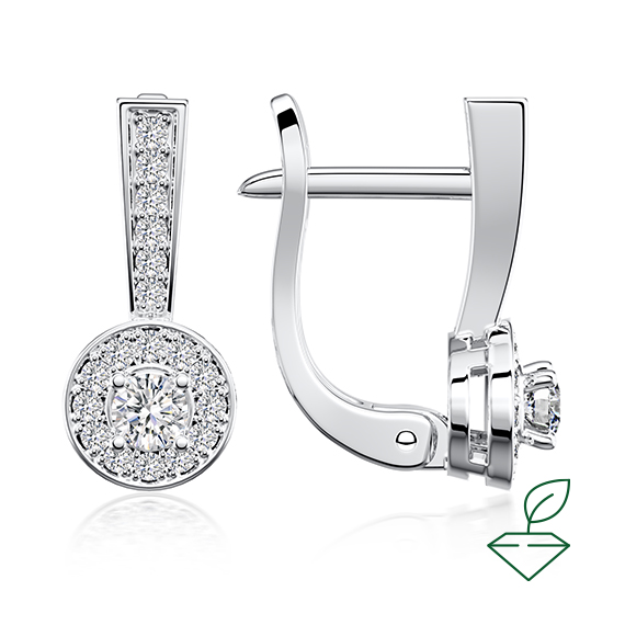 Серьги из белого золота 585 пробы с выращенными бриллиантами. Характеристики вставок: 2 выращенных бриллианта Кр-57, общей массой от 0,17 карата 2/4А, диам. 2,8 мм. 36 выращенных бриллиантов Кр-57, общей масоой от 0,21 карата 2/4А, диам. 1,1 мм. Серьги покрыты родием для защиты металла от внешних вздействий и придания ему зеркального блеска. Отлично подойдут в качестве подарка и украсят собой любое торжественное мероприятие.
