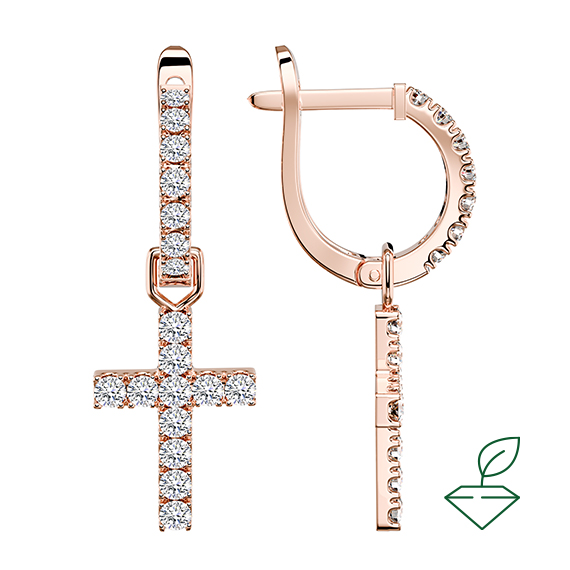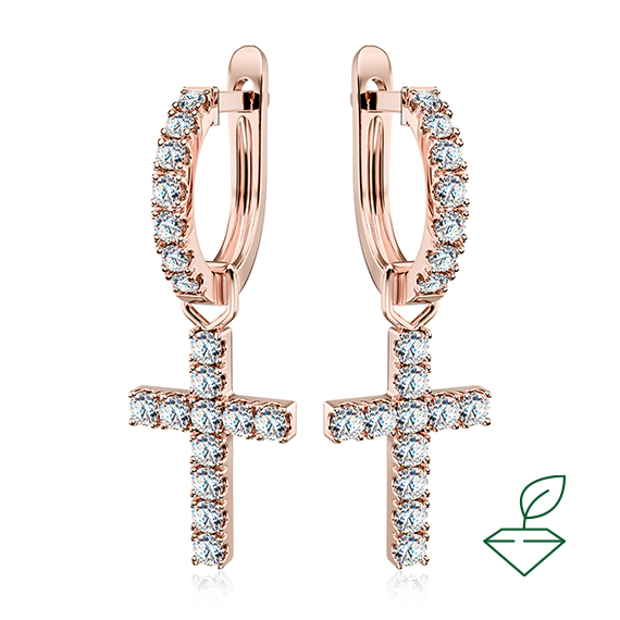 Серьги крестики трансформеры из красного золота 585 пробы с выращенными бриллиантами. Характеристики вставок: 14 выращенных бриллиантов Кр-57, общим весом от 0,19 карата 2/4А, диам.1,5 мм 22 выращенных бриллианта Кр-57 общим весом 0,50 карата 2/4А, диам. 1,8 мм Отлично подойдут в качестве подарка и как украшение на каждый день.